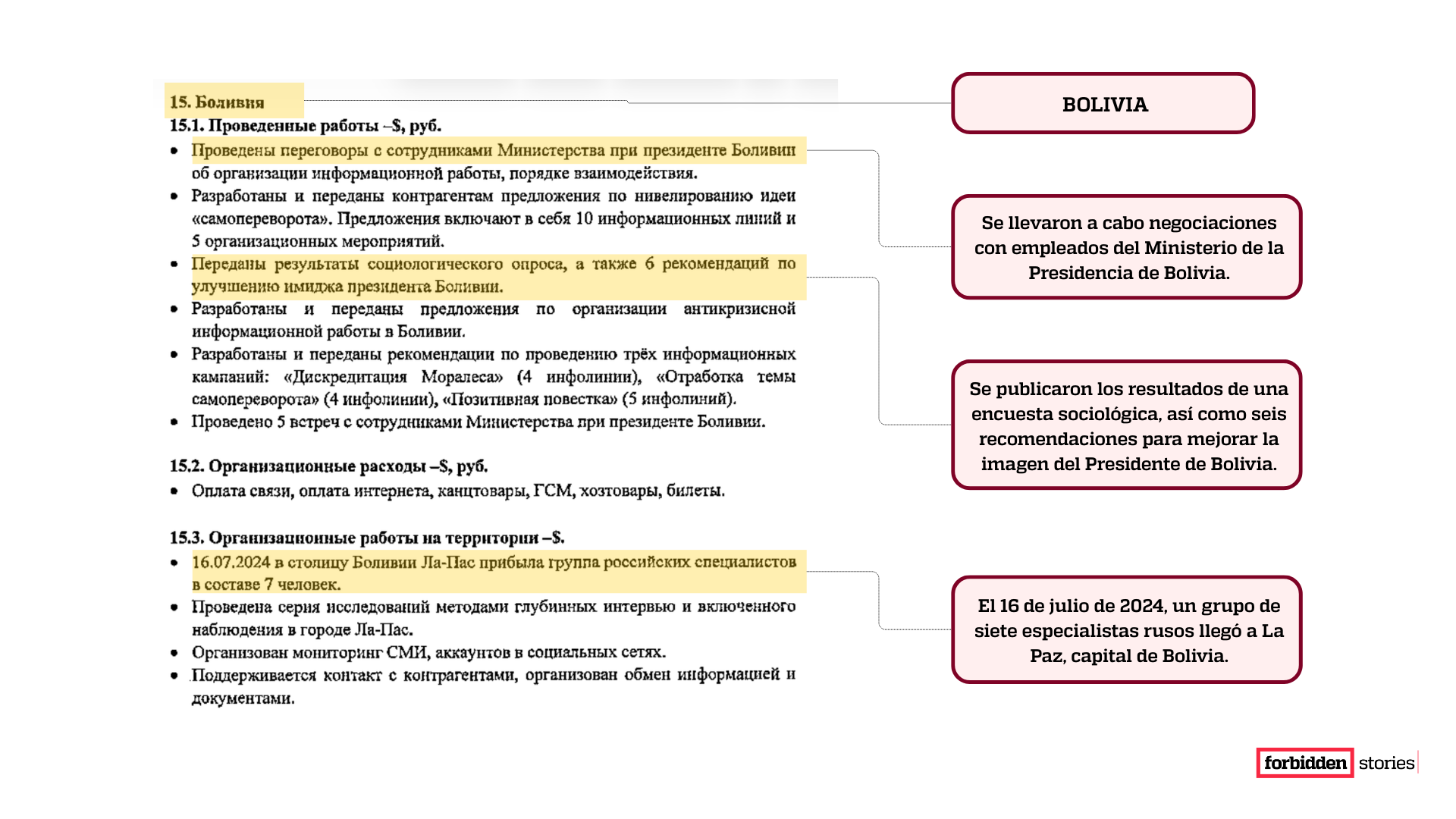 - Los operativos abandonaron Bolivia a finales de 2025, según información obtenida por Forbidden Stories.