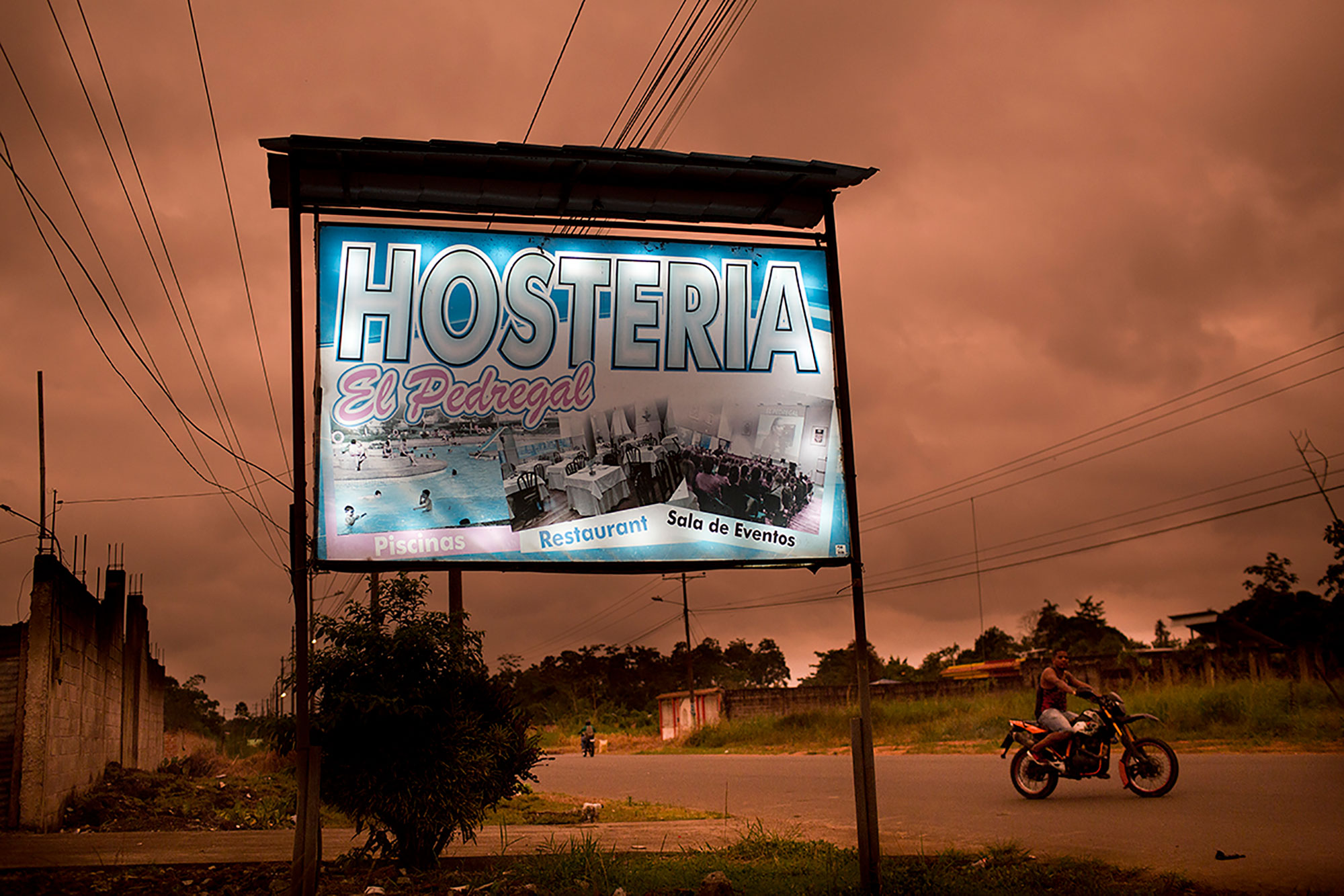 El Hostal El Pedregal, fuñe del lugar donde se vió salir por última vez a los tres periodistas asesinados. Este lugar solía ser donde los periodistas de El Comercio llegaban para todas sus coberturas en la zona.Familias desplazadas de El Pan , viven hacinadas en una casa de San Lorenzo. Foto Edu León/ Periodistas Sin Cadenas.