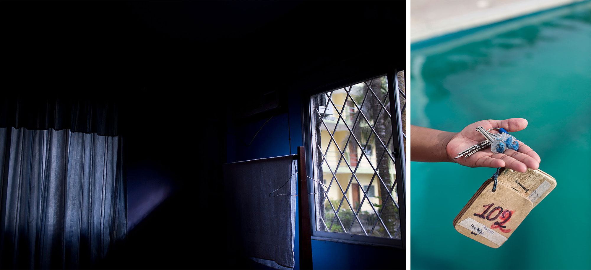 Fotografías sacadas de los informes de la fiscalía que sistematizan la realidad de la zona de Esmeraldas, junto a fotografías realizadas en los mismos lugares.En la imagen videocámara de vigilancia del hotel donde se hospedaron los periodistas en su última cobertura Foto: Edu León Periodistas Sin Cadenas