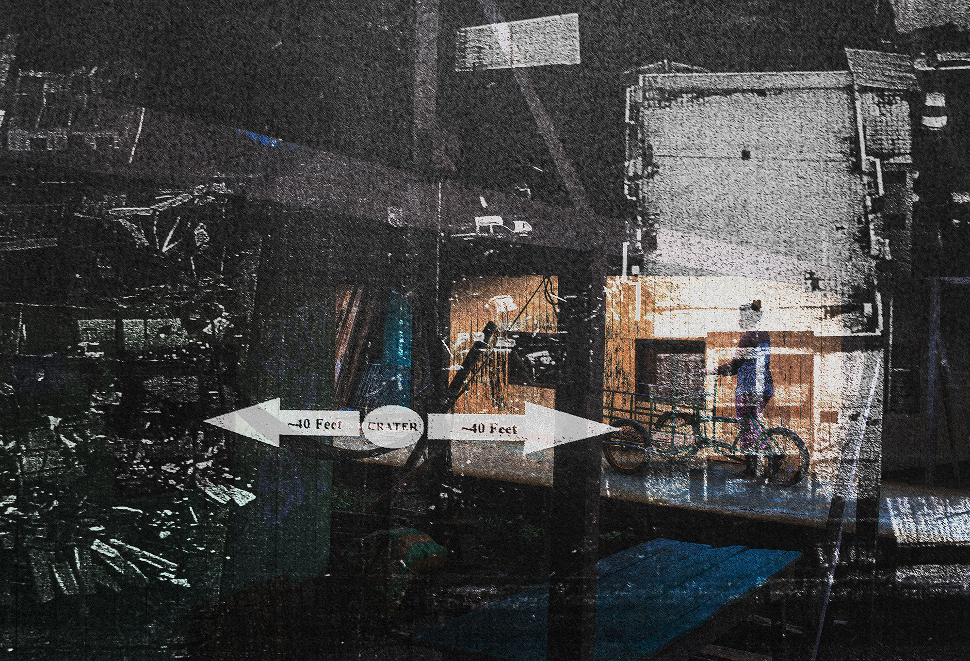 Fotografías sacadas de los informes de la fiscalía que sistematizan la realidad de la zona de Esmeraldas, junto a fotografías realizadas en los mismos lugares. En la imagen fotografía que señala una de las casas que estás siendo investigadas como posibles sospechosos Foto: Edu León Periodistas Sin Cadenas