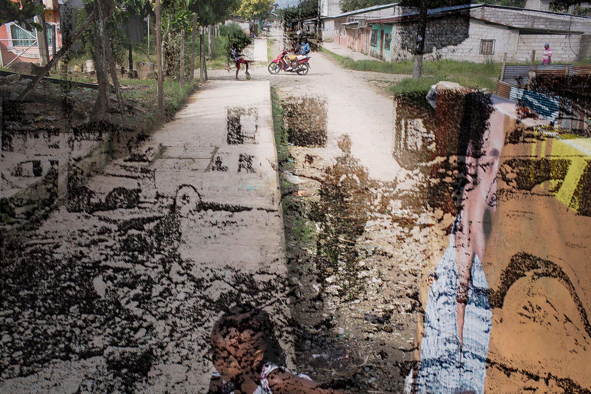 Fotografías sacadas de los informes de la fiscalía que sistematizan la realidad de la zona de Esmeraldas, junto a fotografías realizadas en los mismos lugares. Foto: Edu León Periodistas Sin Cadenas