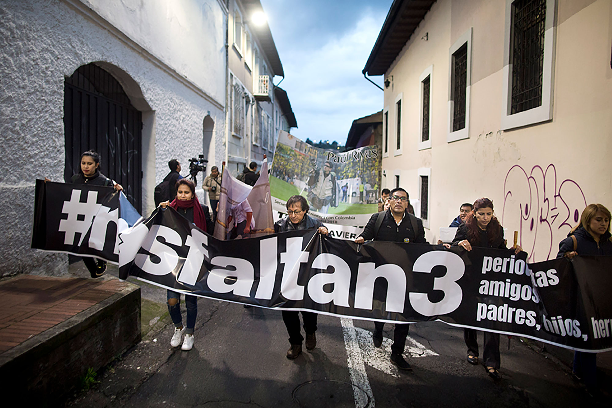 El 19 de abril se realizó una manifestación que recorrió las calles de Quito pidiendo la liberación de los tres periodistas. Foto: Edu León / Periodistas Sin Cadenas