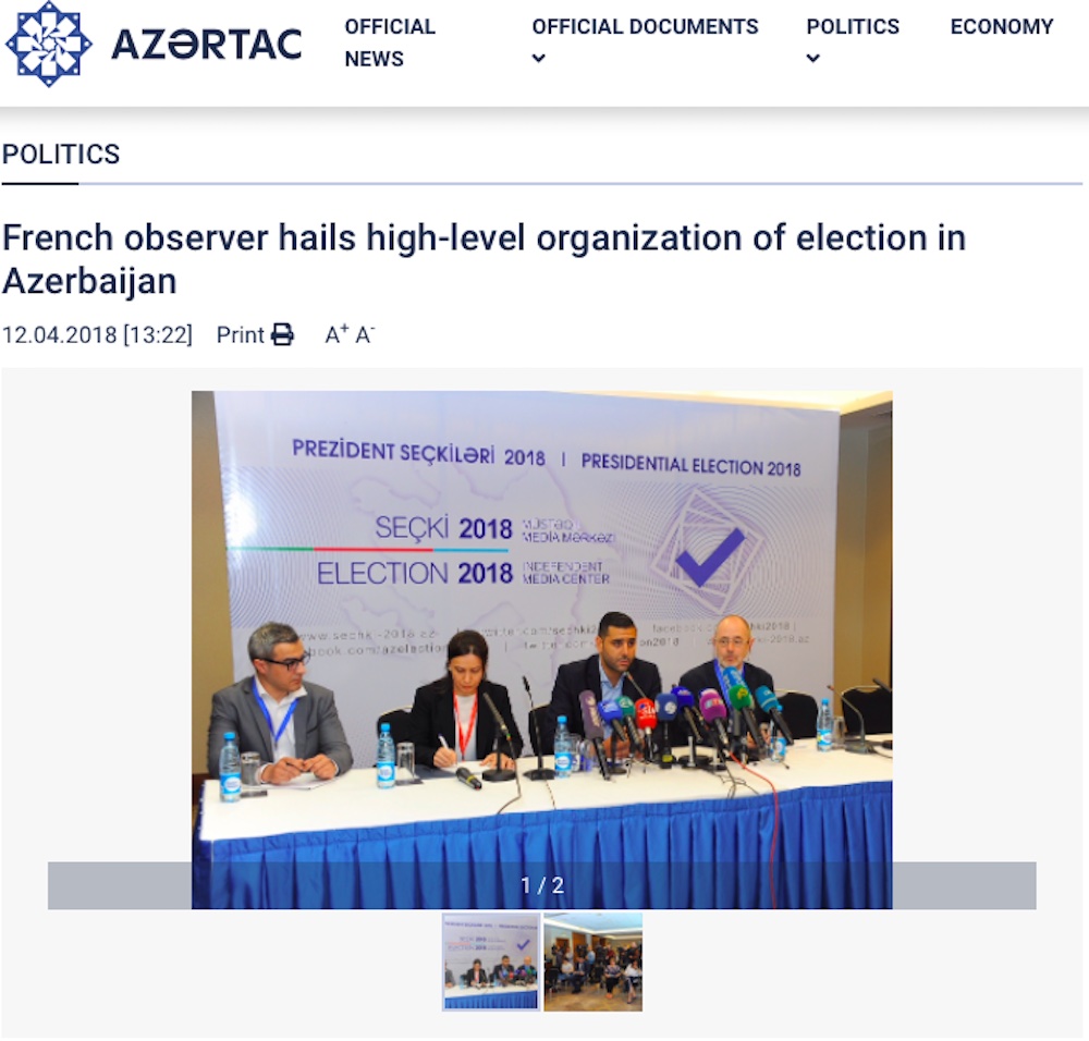 Ces observateurs européens, dont certains ont été condamnés pour corruption, ou qui ne suivent pas une méthodologie rigoureuse, une ONG européenne leur a donné le nom de « fake observers » (faux observateurs). Sur son site, l’EPDE – European Platform for Democratic Elections – liste ces « observateurs biaisés », notamment à partir de leurs déclarations dans la presse azérie. En Azerbaïdjan, ils sont plus de 70 sur les huit dernières années selon le décompte de l’ONG. Certains étaient membres du Conseil de l’Europe, d’autres invités à titre « d’observateurs indépendants », tous frais payés. Des observateurs dont la presse azérie n’hésite pas à mettre en valeur les titres de sénateur, député, assistant parlementaire, maire.