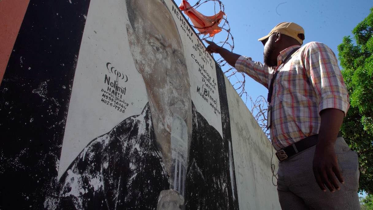 Sur les murs d’enceinte du parc Bayas, en périphérie de Mirebalais, le visage de Néhémie Joseph. Le regard dur, micro en main accolé à une épitaphe : « yon vwa etenn, 1 000 lot ap pale ! » ( « une voix s’éteint, mille autres parlent », NDLR). C’est ici, à côté du stade de football, que son corps a été découvert percé de plusieurs balles, dans le coffre de sa propre voiture. « C’était comme une bombe lorsqu’on l’a appris. Ça a été un coup dur pour toute la population », se souvient Serondier Louisia, devant la fresque. À 32 ans, le jeune journaliste incarne la relève. Pour lui, Néhémie Joseph est un « modèle », un « combattant ». Comme ses confrères, il dénonce un crime politique : « on a dit de lui qu’il parlait trop, et que l’on devait l’éteindre ».