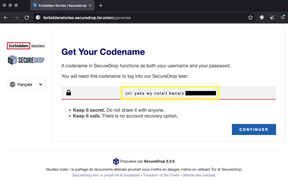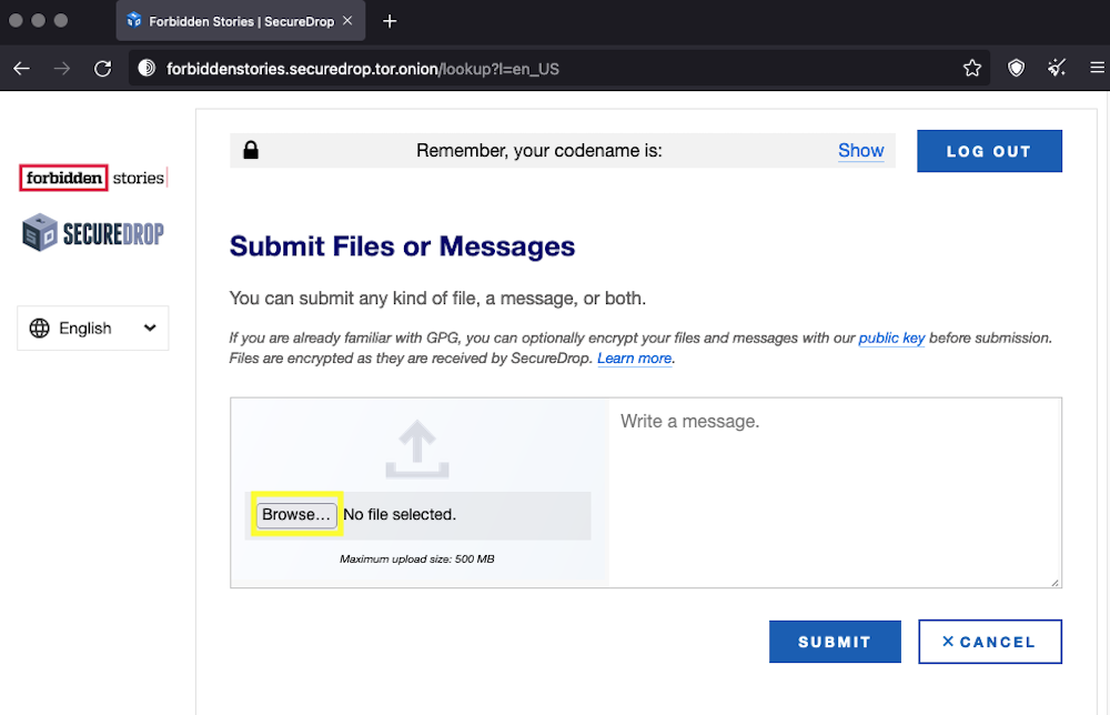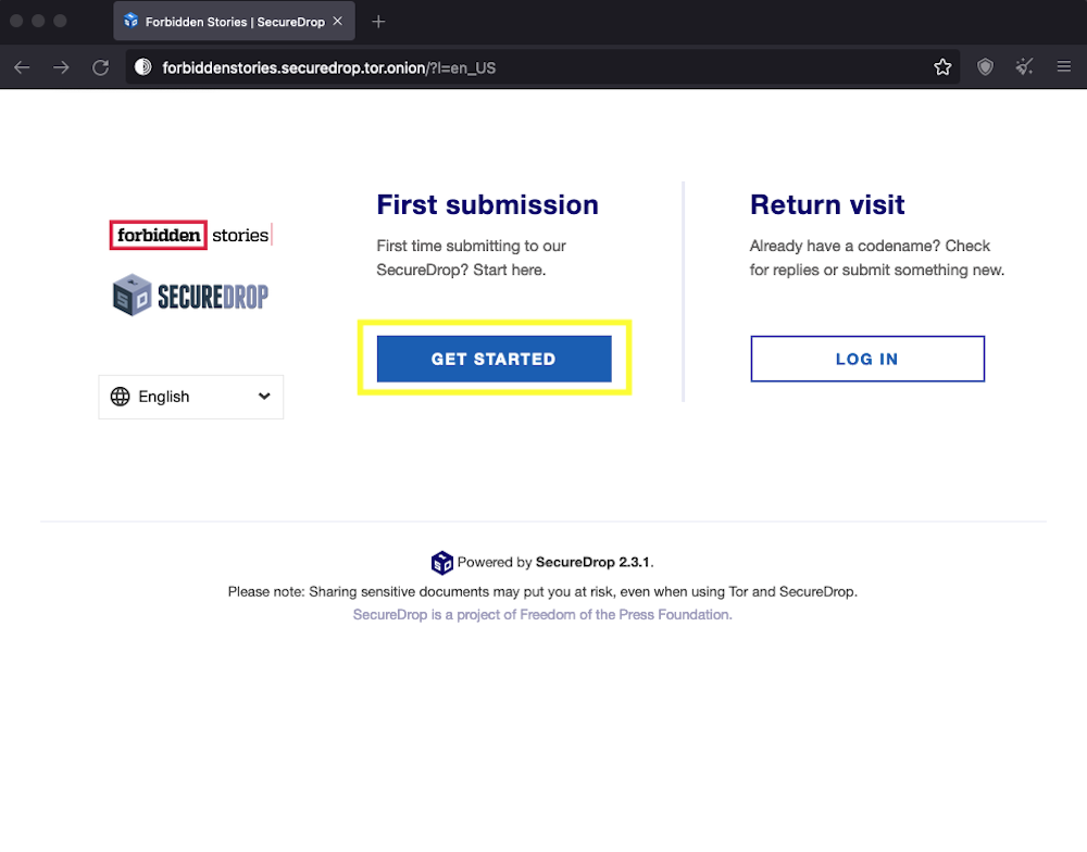 4. Welcome! You’ve arrived on Forbidden Stories’ SecureDrop interface. If the page isn’t displaying, it’s probably loading. It may take a while if your internet connection is bad. But it is usually fast.